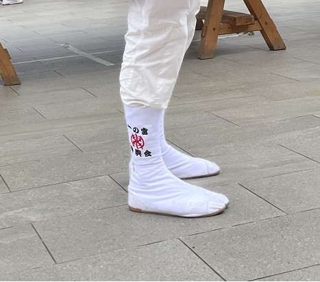 今回は地下足袋に神社の紋と一の宮、神輿会、お名前を刺繍させていただきました。